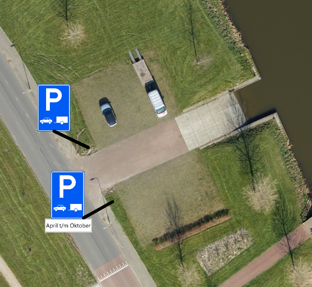 door het bestemmen van de parkeerplaatsen gelegen aan de boothelling voor voertuigen met een aanhangwagen, d.m.v. een combinatie van verkeersborden E08, OB59 en OB60, het beoogde doel van deze parkeerplaatsen kan worden gewaarborgd,
