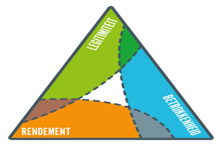 De waarden legitimiteit (maakt het initiatief verschil?), betrokkenheid (bestaat er draagvlak voor het initiatief?) en rendement (met schaarse middelen moeten we verstandig omgaan), staan centraal.