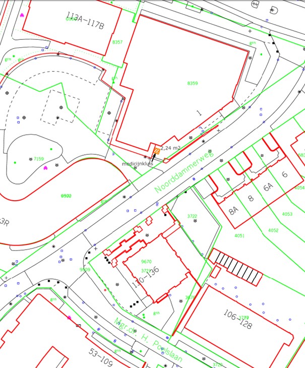 Het perceel is gelegen nabij het Noorddamcentrum en is plaatselijk bekend als Noorddammerweg 1 te Amstelveen. Het perceel is kadastraal bekend als gemeente Amstelveen, sectie O, nummer 8359 groot ongeveer 3 m².