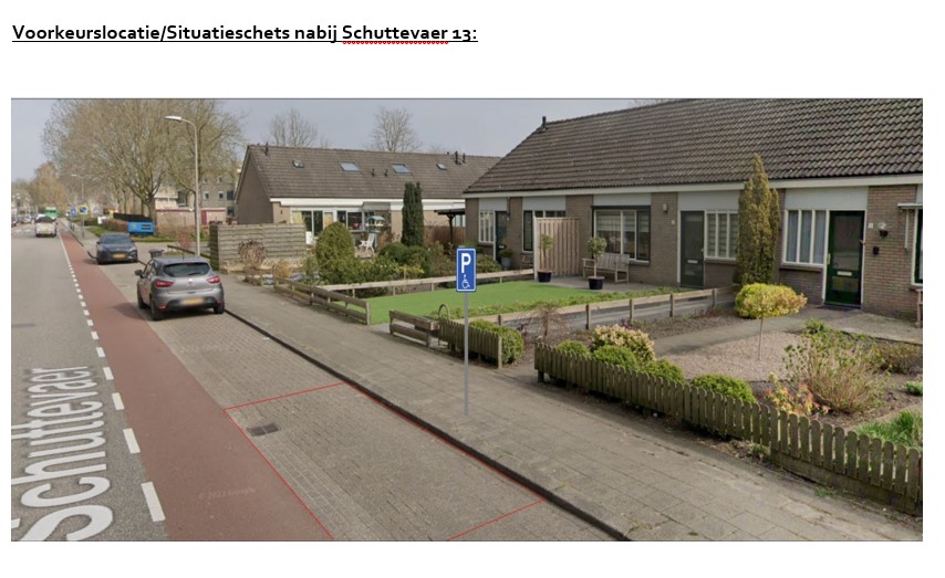 -van een inwoner een aanvraag is ontvangen voor aanwijzing van een algemene gehandicaptenparkeerplaats nabij het adres: Schuttevaer 13, Dedemsvaart;