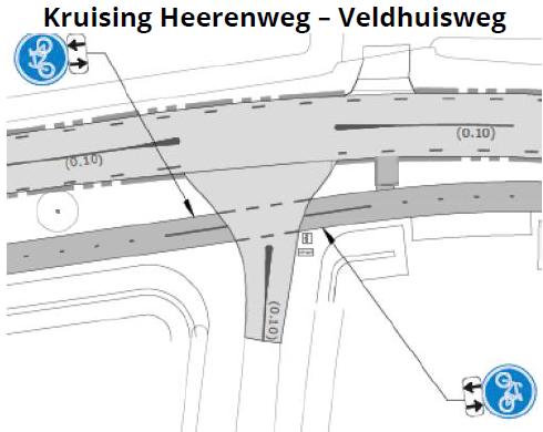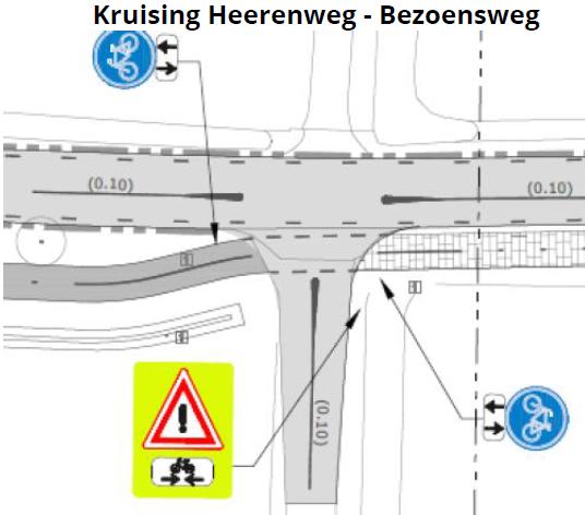 Door het plaatsen van verkeersbord G11 met onderbord OB505 conform bijlage 1 van het RVV 1990 bij het begin van het fietspad ter hoogte van de kruisingen: Heerenweg fietspad-Bezoensweg en Heerenweg-Veldhuisweg;