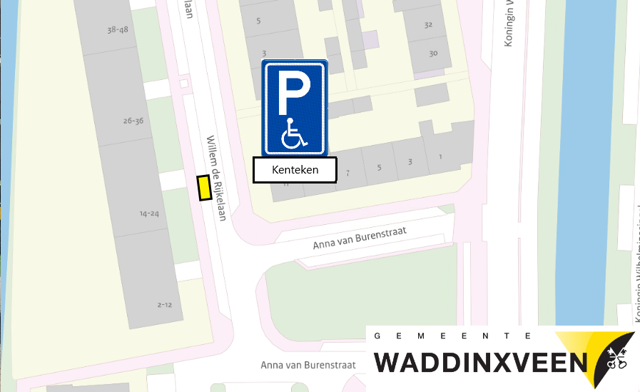 Verkeersbesluit voor het aanwijzen van een gehandicaptenparkeerplaats op kenteken aan Willem de Rijkelaan te Waddinxveen
