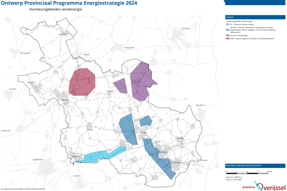 Figuur 1. Voorkeursgebieden windenergie provincie Overijssel