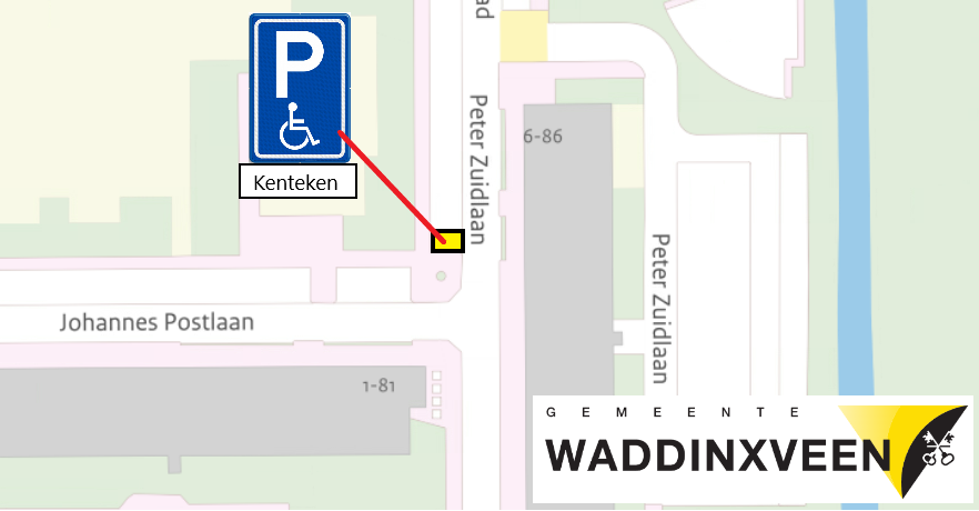 Verkeersbesluit voor het aanwijzen van een gehandicaptenparkeerplaats op kenteken aan Peter Zuidlaan te Waddinxveen