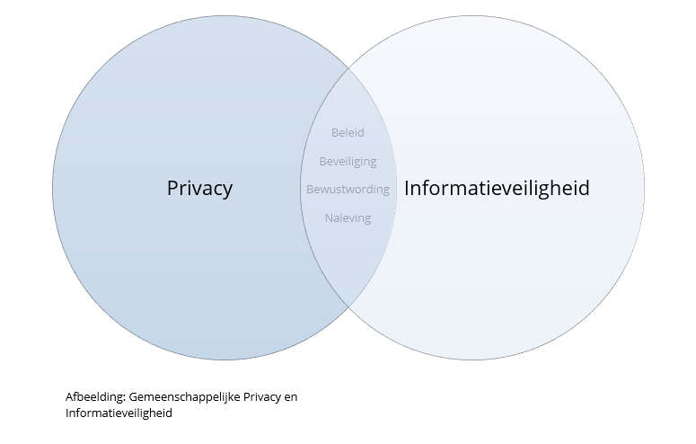 Deze gemeenschappelijkheid blijkt ook uit de AVG (bron 10) waarin staat dat persoonsgegevens op een veilige manier verwerkt moeten worden door het nemen van de juiste technische en organisatorische maatregelen. Maatregelen die ervoor moeten zorgen dat het verwerken van persoonsgegevens op een passende beveiliging kan rekenen. Toetsing vanuit normenkaders vindt plaats op de Beschikbaarheid, Integriteit en Vertrouwelijkheid van informatie (BIV).
