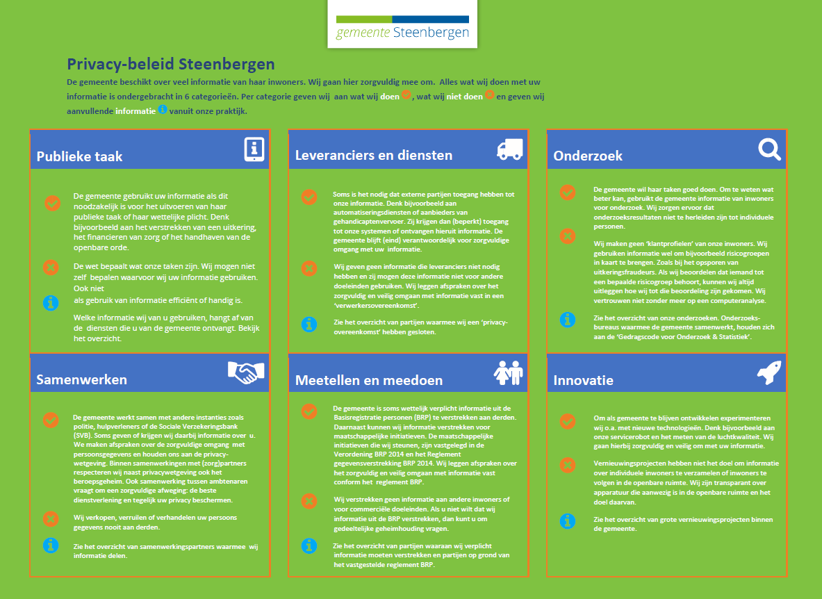 In dit beleid laat gemeente Steenbergen zien op welke manier zij omgaat privacybescherming, en wat er wettelijk wel en niet verantwoord is.