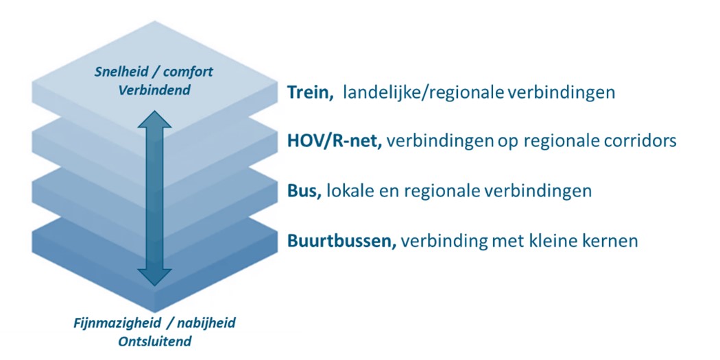 Bij het maken van afwegingen en keuzes voor het openbaar vervoer is het dan ook van belang om vanuit het reizigersperspectief te kijken naar het schaalniveau en de functie van een specifieke verbinding. Het ontwikkelen en aanpassen van het OV-netwerk dient, zoals het principe stelt, voortdurend afgestemd te worden op de specifieke behoeften en vraag van de reiziger. Hierdoor kan het openbaar vervoer optimaal inspelen op zowel de lokale als regionale mobiliteitsuitdagingen. Dit in samenhang met het doelgroepenvervoer, waarbij rekening moet worden gehouden met doelgroepen als ouderen, leerlingen, of mensen met een beperking.