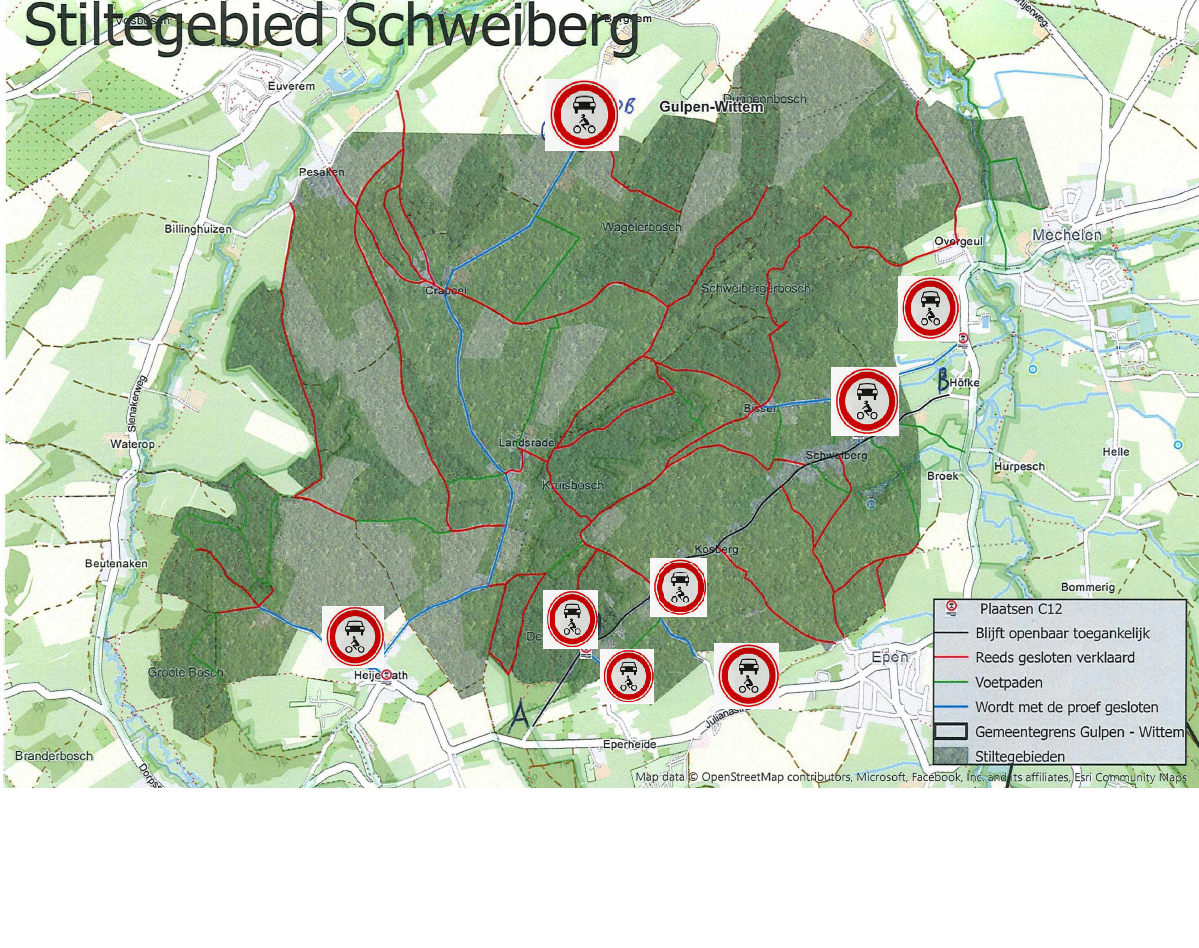 dat het gehele stiltegebied met C12-bebording afgesloten wordt, met uitzondering van de Schweibergerweg.