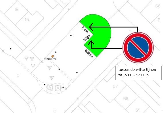 afbeelding van de locatie waar het parkeerverbod van kracht wordt als een standplaatshouder gebruik maakt van de standplaats