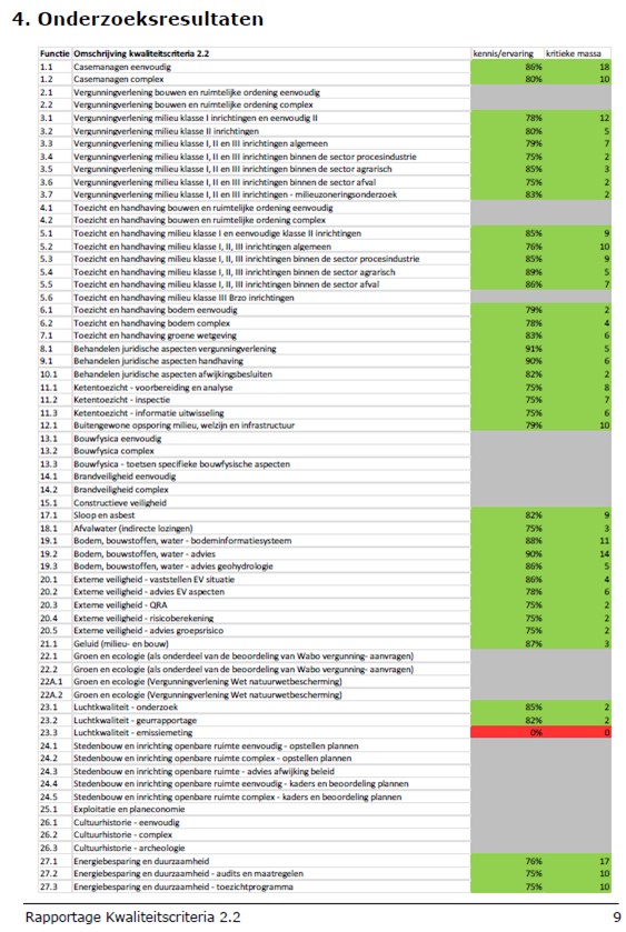 De OFGV heeft aangetoond dat zij voldoen aan de door de overheid vastgestelde kwaliteitscriteria 2.2. Gemeente Noordoostpolder heeft van de OFGV een samenvatting van de scores ontvangen. Op 1 onderdeel na voldoet de OFGV aan de kwaliteitscriteria 2.2. Voor het onderdeel waar aan de OFGV niet voldoet, gaat de OFGV, indien dit zich voordoet, een andere gespecialiseerde omgevingsdienst inhuren om de werkzaamheden hieruit uit te voeren.
