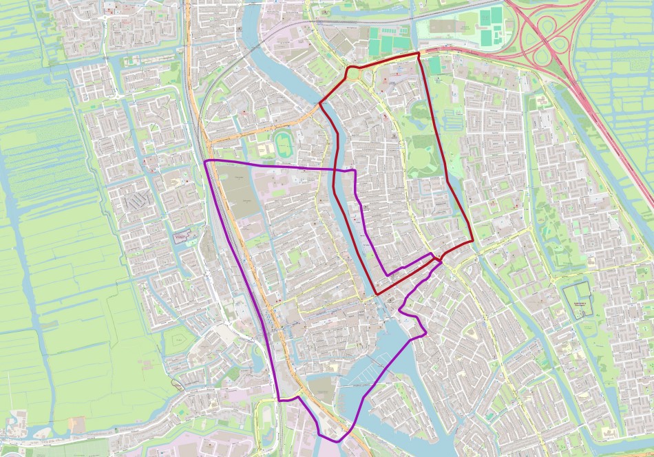 Het ce ntrum gebied van Zaandam (inclusief Russische buurt) wordt begrensd door: