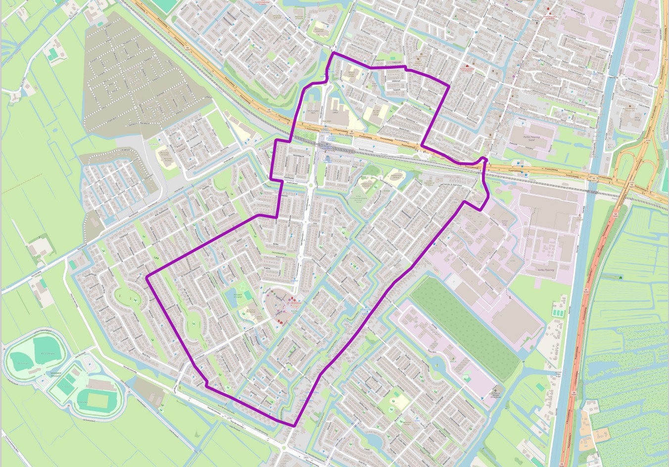 De wijk Rosmolenbuurt met als grenzen van het veiligheidsrisicogebied: