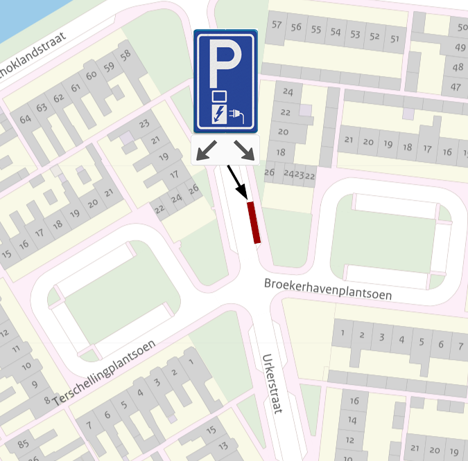 Dat dit gerealiseerd kan worden door middel van het plaatsen van het verkeersbord E8c als bedoeld in bijlage 1 van het RVV 1990 en een onderbord dat aanduidt dat het verkeersbord erboven van toepassing is op twee parkeervakken;