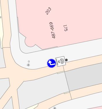 Vaststellen: Gebod tot het volgen van de rijrichting die op het bord is aangegeven, te weten: rechtsaf (D5r) volgens bijlage 1 van het RVV 1990 met de onderborden “Uitgezonderd fietsers” (OB52), ”Uitgezonderd lijnbussen“ (OB104) en ”Uitgezonderd ontheffinghouders”