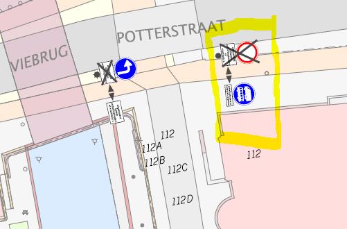 Potterstraat (ter hoogte van het pand Oudegracht huisnummer 112 nabij de Viebrug en het voormalige postkantoor; wegvak: tussen de Oudegracht en de Neude)