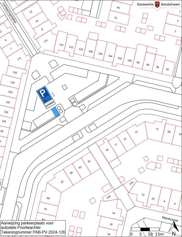 Burgemeester en wethouders van Amstelveen besluiten om in de straat Poortwachter een parkeerplaats aan te wijzen als belanghebbendenplaats voor het parkeren door vergunninghouders voor autodate.