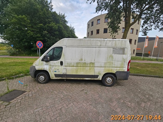 Aan de Steiger ter hoogte van perceelnummer 77 te Almere is een witte bedrijfswagen van het merk Citroën Jumper geplaatst in strijd met het bepaalde in artikel 5:4 van de Algemene Plaatselijke Verordening (APV 2011. Op grond van artikel 5:4 eerste lid van de APV 2011 is het verboden een voertuig dat rijtechnisch in onvoldoende staat van onderhoud of tevens in een kennelijk verwaarloosde toestand verkeert op de weg of op een parkeergelegenheid te plaatsen of te parkeren.
