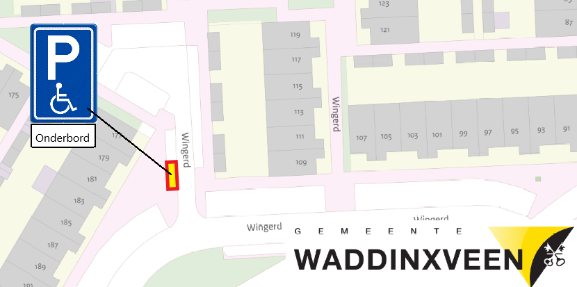 Verkeersbesluit voor het aanwijzen van een gehandicaptenparkeerplaats op kenteken aan Wingerd te Waddinxveen