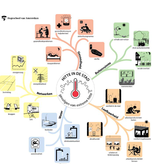 Figuur 5. Mind-map van de gevolgen van extreme hitte voor de stad [31].