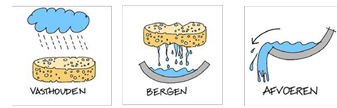 Bij voorkeur wordt water opgevangen in het gebied zelf. Maar in het geval van extreme regenval is het gewenst dat er plekken zijn waar stijging van het water leidt tot beperkte overlast. Landbouwgebieden kunnen worden gebruikt om de capaciteit van waterberging in het oppervlaktewatersysteem te vergroten. Bij voorkeur met een inpassing die de biodiversiteit verhoogt.
