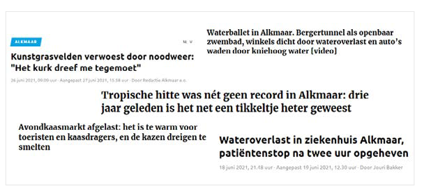 De gevolgen van klimaatverandering zijn ook in de gemeente Alkmaar zichtbaar. Op 18 juni 2021 is in de regio Alkmaar meer dan 80 mm neerslag in anderhalf uur tijd gevallen. Een hoeveelheid regen die normaal gesproken in de volledige maand juni valt. Het riool kon deze extreme hoeveelheid water niet goed verwerken en wegen, straten, tunnels en kelders liepen onder met overlast en schade tot gevolg.