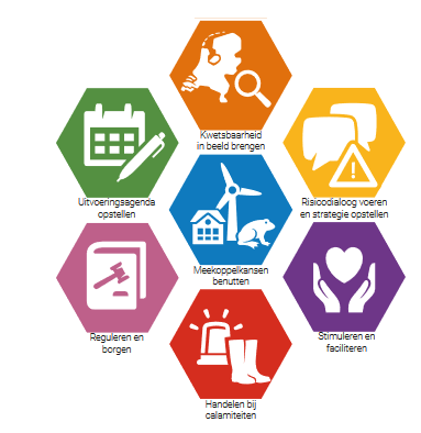 Het Rijk heeft ten doel gesteld dat Nederland in 2050 waterrobuust en klimaat- bestendig is ingericht. Om de ruimtelijke adaptatie in Nederland te versnellen, is het Deltaplan Ruimtelijke Adaptatie opgesteld. Het is een gezamenlijk nationaal plan van gemeenten, waterschappen, provincies en het Rijk met concrete acties en doelen voor de verantwoordelijke overheden.
