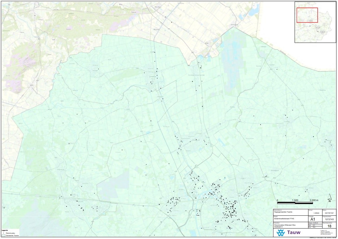 De regio Twente wil voor PFAS een bodemkwaliteitskaart om het grondverzet te faciliteren. De bodemkwaliteitskaart bepaalt de gemeten achtergrondwaarde en dient als wettig bewijsmiddel conform artikel 4.3.5 van de Regeling Bodemkwaliteit. Zo wordt voorkomen dat voor elke partij grond en ontvangende locatie een partijkeuring of bodemonderzoek moet worden uitgevoerd.