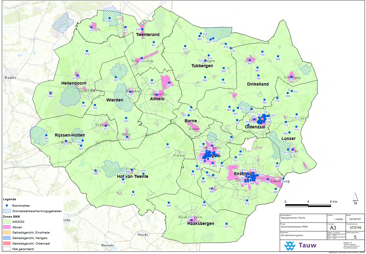 Dit rapport bevat de technische onderbouwing van de bodemkwaliteitskaart PFAS voor de regio Twente. Tauw heeft in opdracht van de regiogemeenten Twente deze bodemkwaliteitskaart opgesteld voor PFAS (poly- en perfluoralkyl verbindingen). Dit is een aanvulling op de bestaande bodemkwaliteitskaart1 en heeft betrekking op de gemeenten Almelo, Borne, Dinkelland, Enschede, Haaksbergen, Hellendoorn, Hengelo, Hof van Twente, Losser, Oldenzaal, Rijssen-Holten, Tubbergen, Twenterand en Wierden.