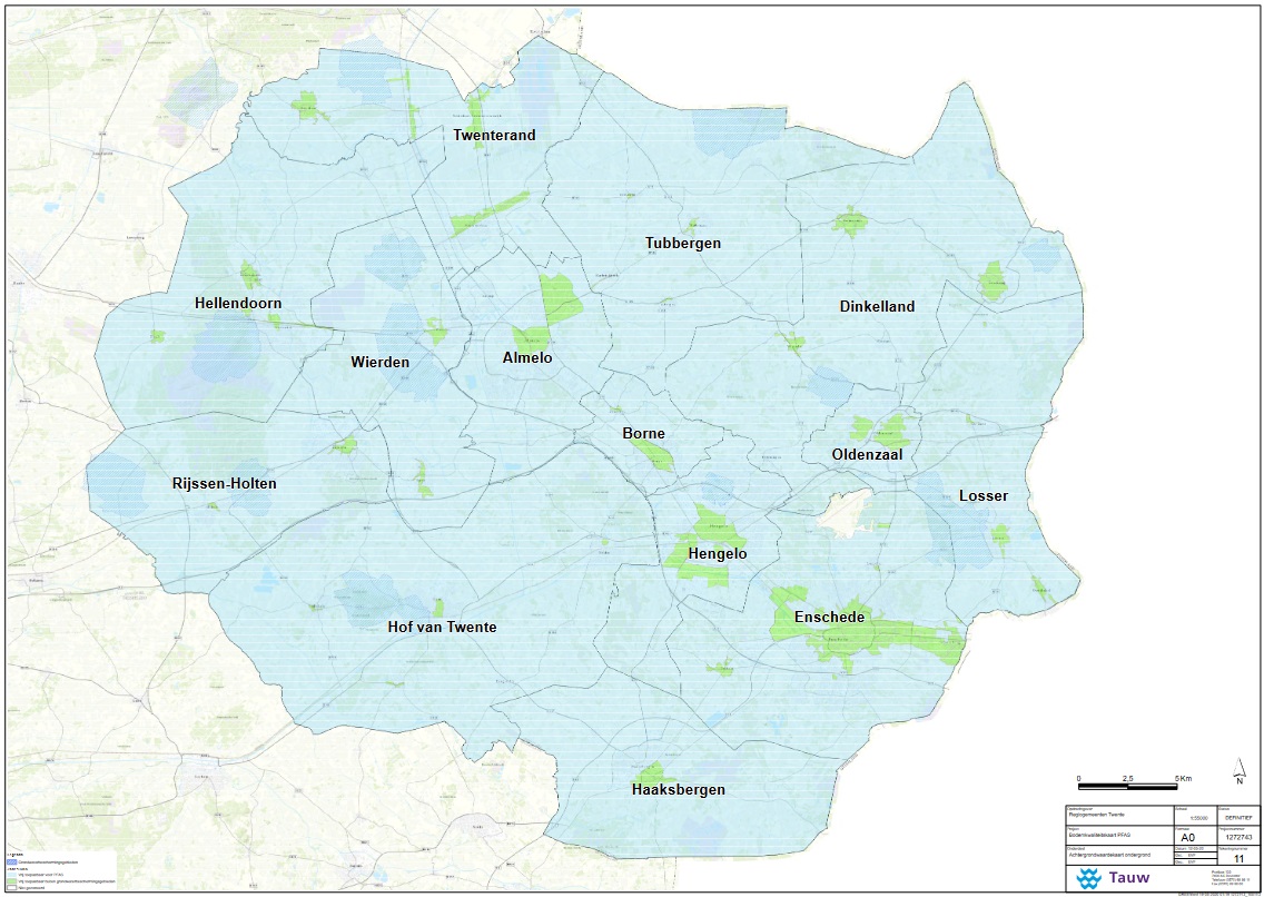 De bodemkwaliteitskaart PFAS is opgesteld voor het grondgebied van de regio Twente. Binnen deze regio bevinden zich de volgende gemeenten: Almelo, Borne, Dinkelland, Enschede, Haaksbergen, Hellendoorn, Hengelo, Hof van Twente, Losser, Rijssen-Holten, Oldenzaal, Tubbergen, Twenterand en Wierden. Het oostelijke deel van de regio valt in het beheergebied van het Waterschap Vechtstromen waarvan de zandvangers ook zijn onderzocht op PFAS. Het overige deel van Twente valt in de beheergebieden van de waterschappen Rijn en IJssel en Drents Overijsselse Delta. Voor deze waterschappen is geen onderzoek gedaan naar PFAS als onderdeel van de bodemkwaliteitskaart PFAS.