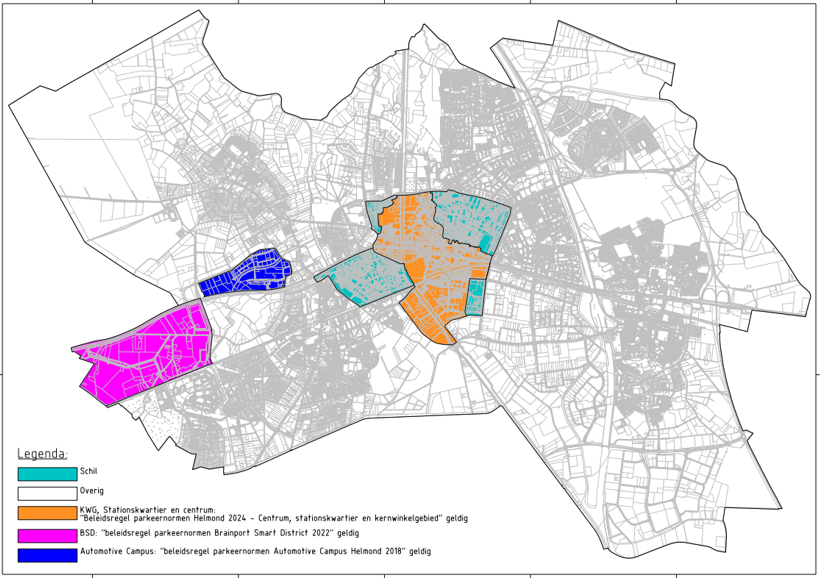Vanwege de ambities voor het centrum, die zijn verwoord in de Visie parkeren en Bereikbaarheid Centrum (2019), de Herijking van het Centrumperspectief (2020), de Actualisatie Parkeerbeleid (2021) en de Mobiliteitsvisie (2023) wordt voor het kernwinkelgebied, het Stationskwartier en het Centrum een nieuwe beleidsregel vastgesteld. Dit betreft de beleidsregel Parkeernormen Helmond 2024– Centrum, Stationskwartier en kernwinkelgebied. De parkeernormen voor de schil en het overig gebied uit de beleidsregel parkeernormen Helmond 2020 blijven in principe gewoon van kracht. Gezien de noodzakelijke wijzigingen wordt hiervoor wel een nieuwe beleidsregel vastgesteld. Deze is volledig gebaseerd op de beleidsregel parkeernormen Helmond 2020, waarbij alleen de volgende zaken geschrapt of aangepast worden: