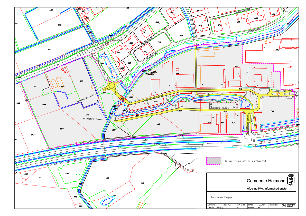 Burgemeester en wethouders van de gemeente Helmond maken bekend dat de gemeenteraad in zijn vergadering van 10 september 2024 ingevolge de bepalingen van de Wegenwet heeft besloten tot onttrekking aan het openbaar verkeer van de Automotive Campus.