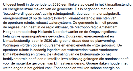 Omgevingsvisie Uitgeest 2030, Mooi, gezond, duurzaam, juni 2019