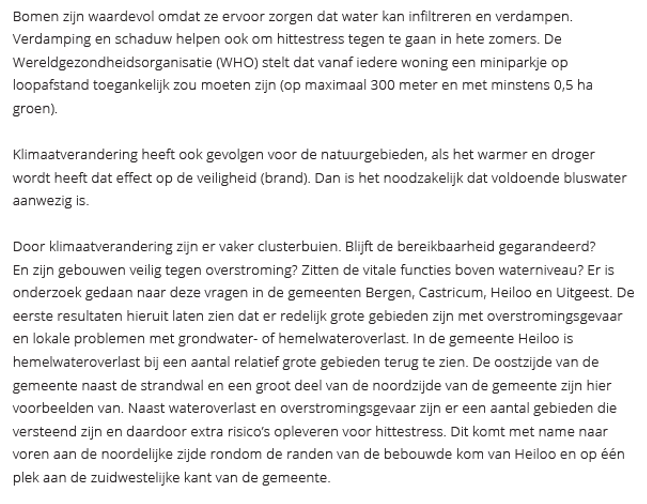 We hebben nu te maken met ingrijpende ontwikkelingen rondom klimaatverandering, biodiversiteit en gebruik van de groene ruimte. Het is daarom essentieel dat Heiloo een groenbeleidsplan ontwikkelt waarmee we de komende jaren het groene karakter en de natuur van Heiloo kunnen behouden en waar dat kan versterken.