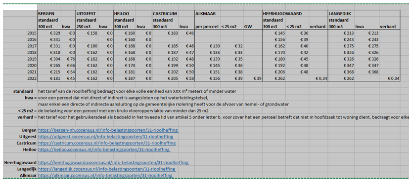 Werkelijke rioolheffingen BUCH en HAL 2015-2022