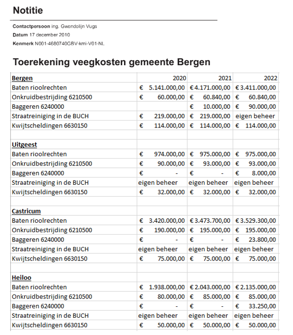 Verordening hemelwaterberging: als bij nieuwbouw op het particuliere terrein op basis van het klimaatadaptatiebeleid hemelwaterberging met een bepaald aantal liters per m2 bebouwd oppervlak is aangelegd, moet de grootte ook minimaal zo blijven om daarmee de kans op wateroverlast in de leefomgeving te verminderen. In Uitgeest, Castricum en Heiloo geldt 40 liter per m2 bebouwd oppervlak, in Bergen 60 liter per m2 bebouwd oppervlak.