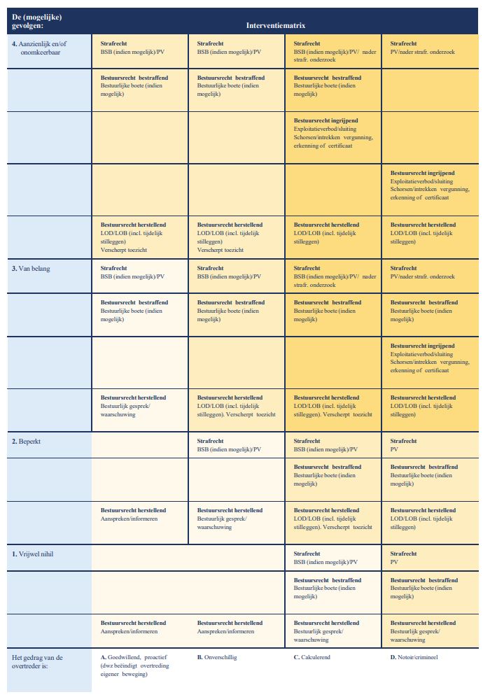De handhaver gebruikt bij stap 4 de algemene of, indien beschikbaar en van toepassing, de domeinspecifieke interventiematrix. Dit werkt als volgt: