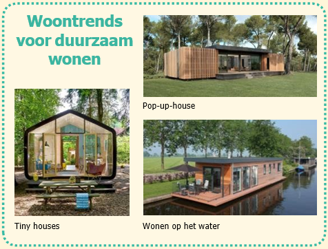 We willen in de gemeente open staan voor nieuwe duurzame vormen van wonen. Denk daarbij bijvoorbeeld aan tiny houses, maar dan wel met een bijdrage aan de omgeving. Vanwege de grote woningbouwopgave zetten wij zelf niet actief in op deze woonvormen. We zullen werken aan een afwegingskader om dit soort initiatieven snel te beoordelen. Draagt het bij aan betaalbare woningbouw, biodiversiteit en een lage ecologische voetprint en gaat het niet ten koste van woningbouwgrond waar een grotere bijdrage geleverd kan worden aan de woningbouwopgave, dan staan we hier positief tegenover. We werken verder uit of we een startbudget of een renteloze lening kunnen geven om dit soort initiatieven verder uit te laten werken. Zo kunnen initiatiefnemers het plan verder uitwerken. Zie hiervoor pagina 37.