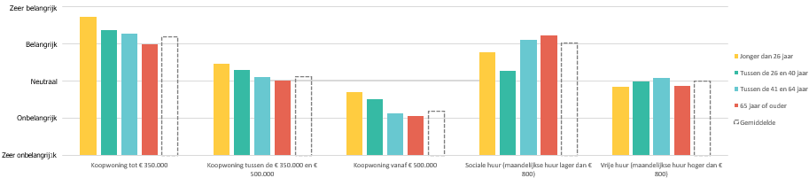 Hoewel gemiddeld genomen uit de enquête blijkt dat koopwoningen boven de € 350.000 minder belangrijk tot zelfs onbelangrijk worden gevonden, betekent het niet dat die wens er niet is. Zo vindt ongeveer 40% van de ondervraagden een koopwoningen tussen de € 350.000 en € 500.000 (zeer) belangrijk. Boven de € 500.000 was dit slechts iets meer dan 10%.