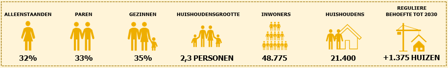 De behoefte aan woningen is overal in de gemeente merkbaar. Dat betekent dat overal ruimte is voor iets nieuws. In het woonbehoefteonderzoek hebben we dit vertaald naar een wensprogramma. Zie daarvoor de volgende pagina. Los van het reguliere bouwprogramma is het zaak om 725 verblijfseenheden voor tijdelijk verblijf van arbeidsmigranten te realiseren. Dat kan bijvoorbeeld in de vorm van een migrantenhotel.