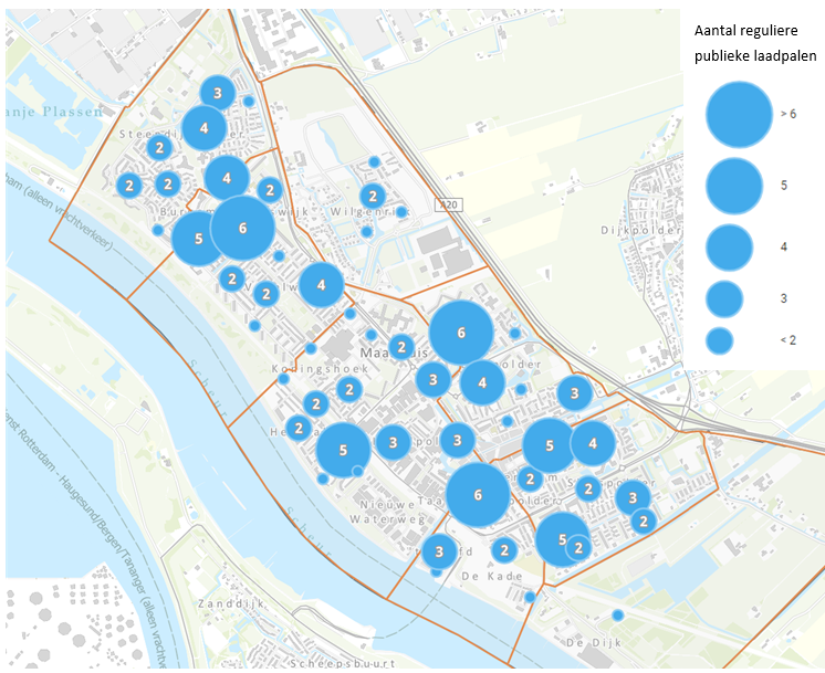 Figuur 1: Een actuele indicatie hoe het publieke laadnetwerk in gemeente Maassluis eruitziet
