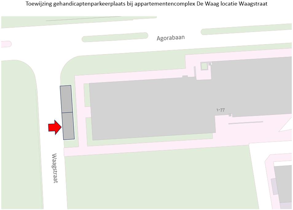Door plaatsing van bord E6 (gehandicaptenparkeerplaats) van bijlage 1 van het Reglement verkeersregels en verkeerstekens 1990 met een onderbord met kenteken in de Waagstraat bij het appartementencomplex De Waag een parkeervak zo dicht mogelijk bij de woning van de aanvrager als gereserveerde gehandicaptenparkeerplaats aan te duiden;