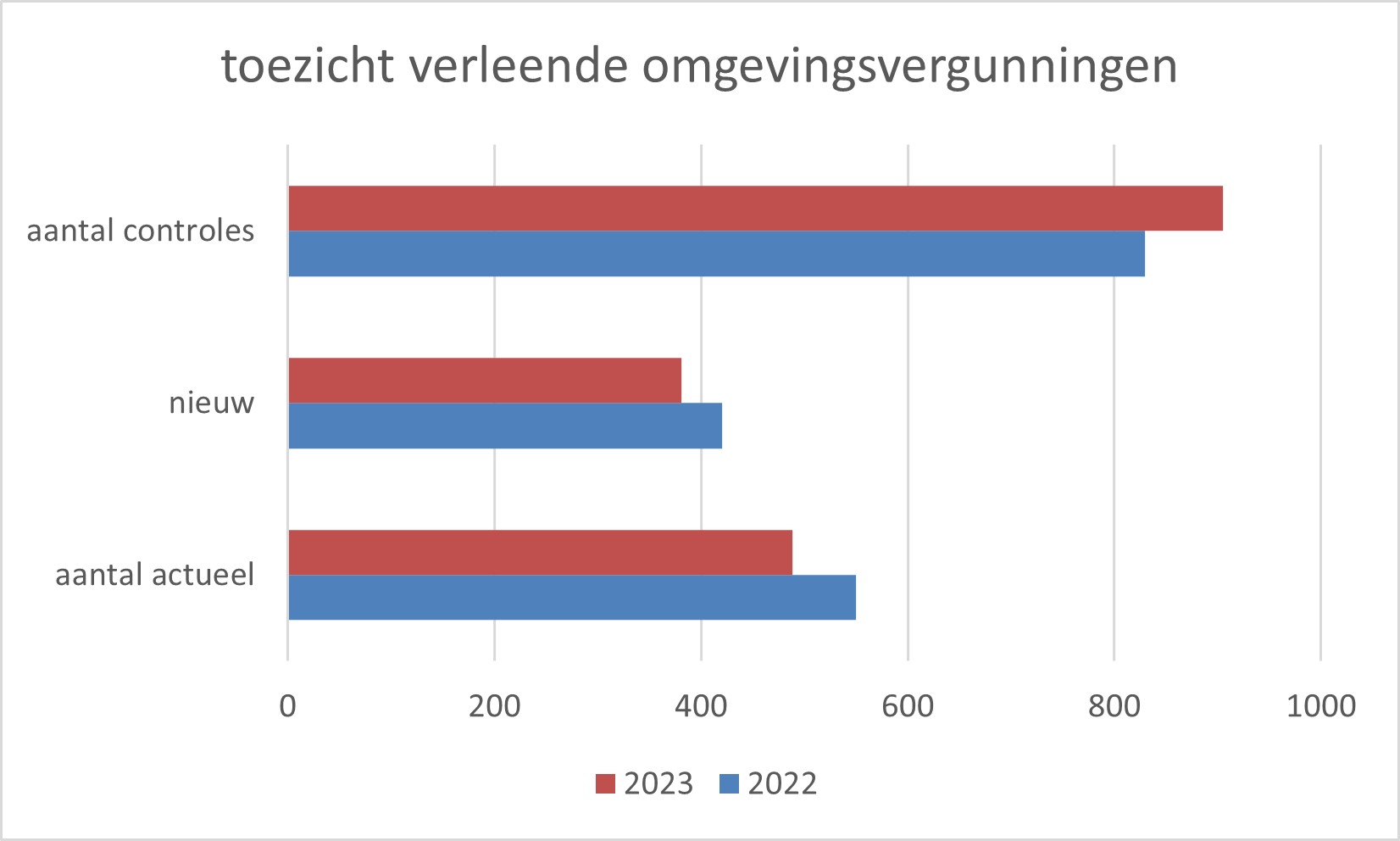 Ook in 2023 is extra aandacht besteed aan brandveiligheid, constructieve veiligheid en duurzaamheid. In 2023 zijn minder controles uitgevoerd. Dit is in lijn met het aantal verleende vergunningen dat in 2023 ook een kleine afname laat zien.