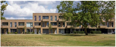 In het noordelijke en centrale deel worden de gebouwen omzoomd door een haag Ook in In het zuidelijke deel zijn groene levende erfafscheiding (hagen) het uitgangspunt voor de twee-onder-één kapwoningen. Bij het appartementengebouw met de sociale huurappartementen loopt het openbaar groen door tot aan de gevel, om het groene profiel rondom het pad zo open mogelijk te houden.