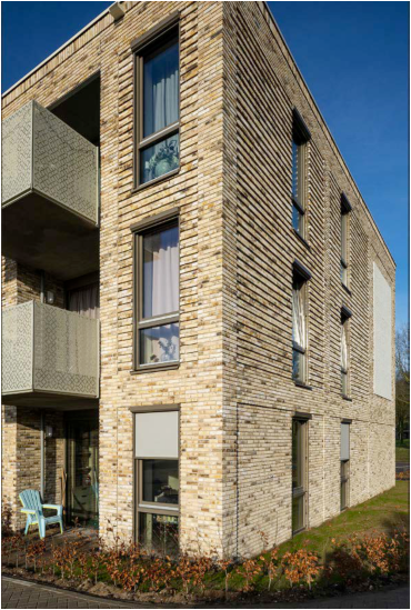Robuuste en zorgvuldige detaillering, plastiek in de gevel geeft dorpse / menselijke maat en schaal