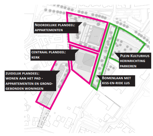 Daarnaast is er in het gebied nog een opgave vanuit parkeren: Bij de realisatie van het Kulturhus is er vanuit gegaan dat bij de verdere ontwikkeling van het Sonnenbergkwartier aanvullende parkeerplekken voor het Kulturhus worden gerealiseerd. Door het dubbelgebruik van parkeerplekken voor de kerk kan aan deze opgave invulling worden gegeven.