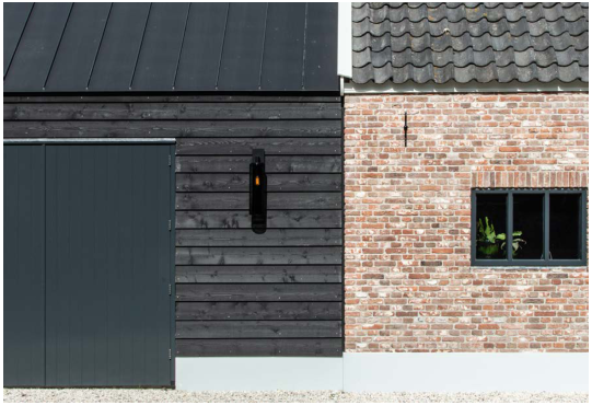Gecombineerd materiaalgebruik: hout en baksteen metselwerk