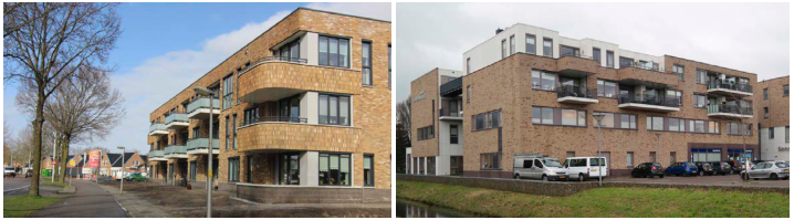 De appartementen in het zuidelijke deel sluiten qua vormgeving aan bij de architectuur van de appartementen aan de Oosterlandenweg en het Kulturhus. Om de bouwmassa visueel te verzachten is het ook hier van belang dat de vormgeving dorps en gevarieerd is. De vormgeving van de bovenste laag is afwijkend, dit komt met name tot uitdrukking in de materialisering.