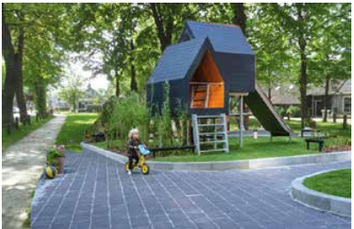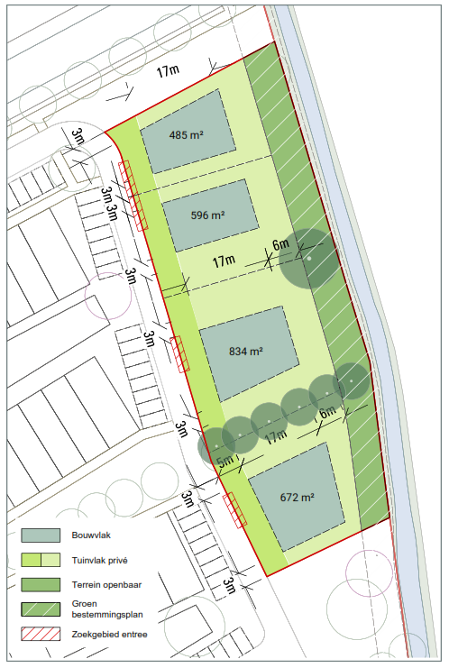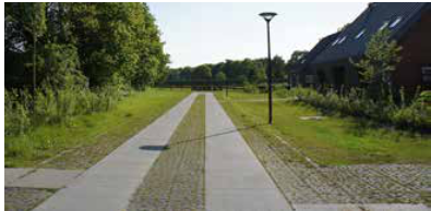 De centrale groene plekken vervullen een dubbelfunctie als groen verblijfsgebied en wateropvang. Het groene veld, eventuele aanvullende paden of pleintjes maken integraal onderdeel uit van de ruimte en het omringende straatje.