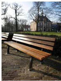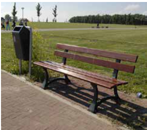 Zitmeubilair zal dezelfde trend volgen als de speeltoestellen, waarbij de zitelementen in robuust en simpel hout uitgevoerd worden met ondersteunende metalen onderdelen. Eventueel ondersteunend meubilair zoals afvalbakken zullen ook in metaal uitgevoerd worden.