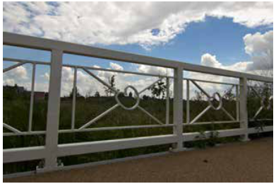 Referentie voetgangersbrug met wit/licht leuningwerk